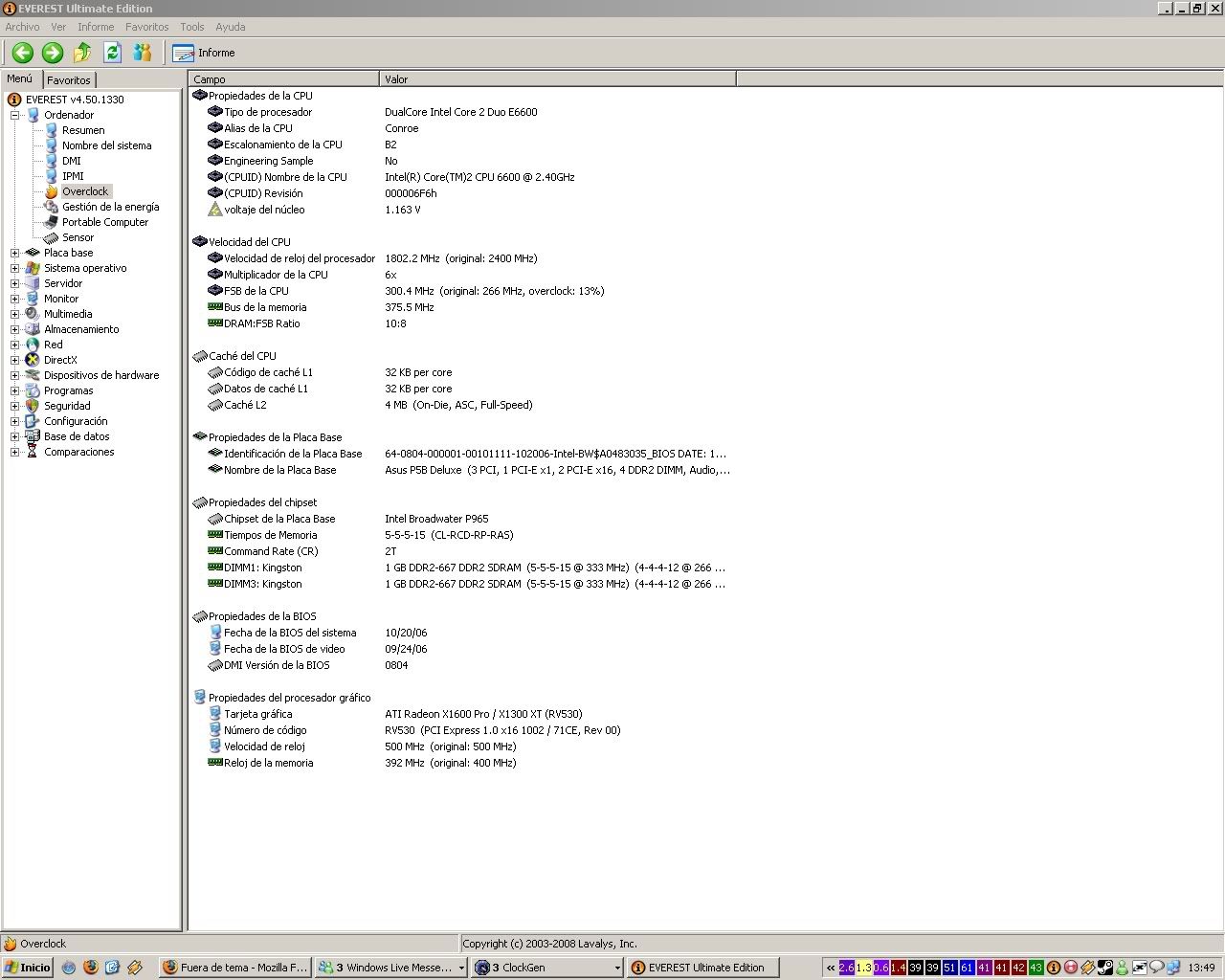 Aquí teneis, con overclock al 13% (si pongo más se me reinicia el ordenador, supongo que por falta de alimentación). Despues de hacer test de estabilidad a la CPU de minuto y medio (CPU+caché)