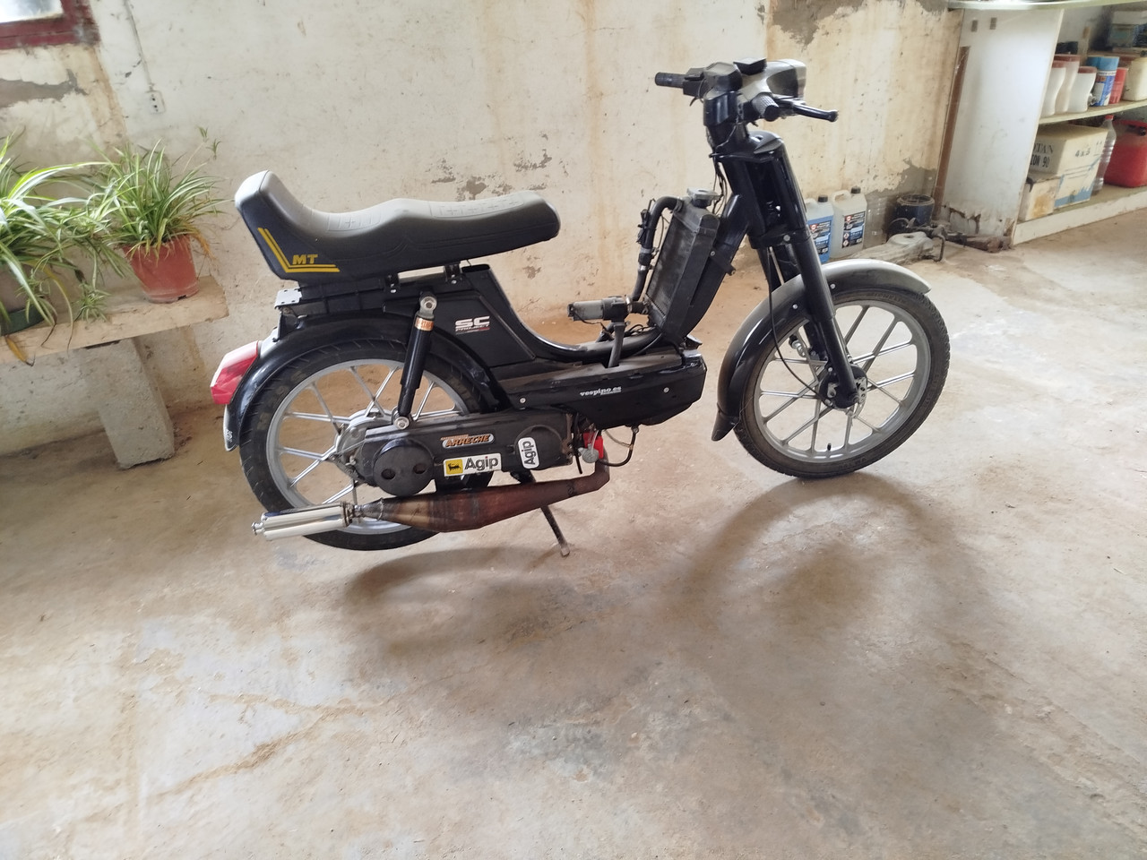 Vespino F9 "clon" trucado: Cilindro Gilardoni 65cc trasnfers grandes abiertos, rampa cárter largo, Carburador PHBG 21mm 40-105 chiclés, filtro cónico potencia 28/35, escape Tavi, variador Varioplus 7g, muelles pequeños 90% sobre ALX, contraste superduro VAM8X, láminas carbono biaxial.