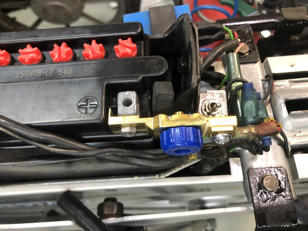 Hola. Mi modelo lleva batería y botón de arranque. El otro día vino visita a casa y viendo la moto una de las personas apretó el botón y aunque tenía el interruptor de seguridad de arranque desconectado, el motor de arranque sí se activó. Resulta que el interruptor corta el negativo, si está en posición C, la moto nunca arrancará, por mucho que le den a los pedales o al botón. Pero botón del motor de arranque lleva un circuito independiente, por lo que al darle al botón intenta arrancar. No me gustó nada la idea, porque si la dejo aparcada en la calle y por ejemplo se sube un niño y le empieza a dar, puede estropear algo o dejarme sin batería. O un caco que entienda poco se cree que va a arrancar y lo mismo, a darle. Así que le he instalado un desconectador de baterías al positivo. Por si a alguien le interesa cuelgo fotos, porque hay que ponerlo así, de otra forma no se puede bajar el sillín. Saludos.